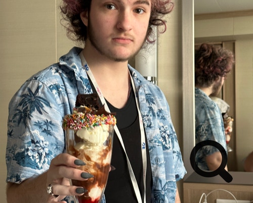 Baz enjoying a super sundae on the cruise ship
