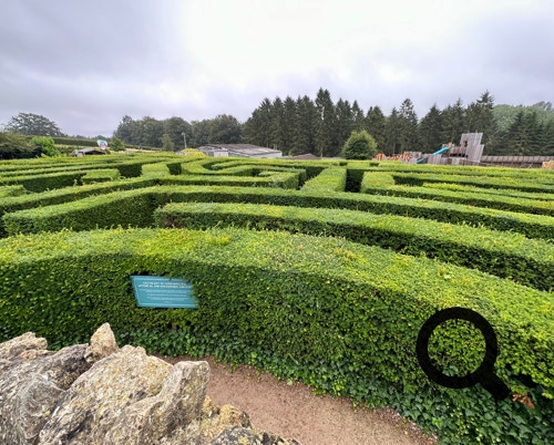 A view of the hedge maze from the top of the center “tower”