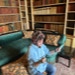 Baz grown up in the same post as last time (reading a pretend book in the library)